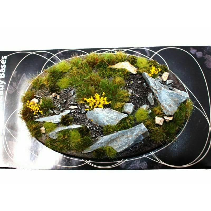 Transform your miniature models with the Gamers Grass Highland Bases Oval 105mm. These meticulously crafted bases offer a highland terrain aesthetic, providing a realistic and dynamic foundation for your miniatures.